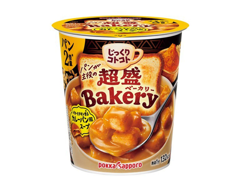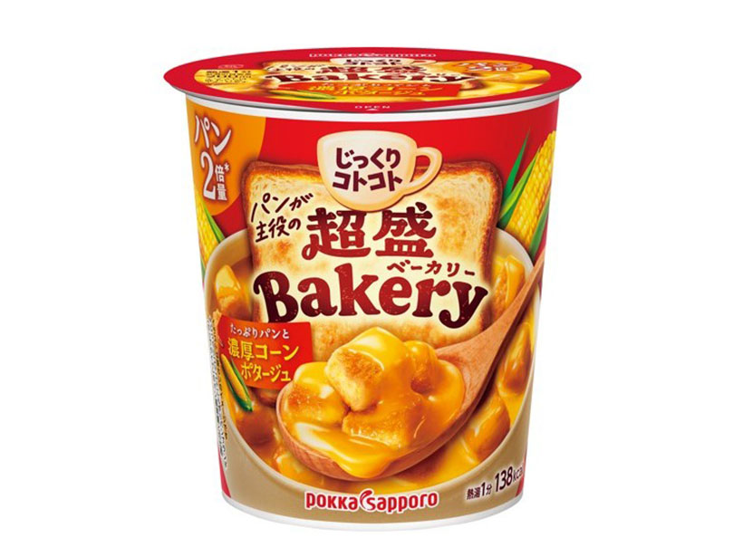 ポッカサッポロフード&ビバレッジは「じっくりコトコト」ブランドのカップ入りスープの成長を加速させる。新たにパンを主役とした「超盛Bakery(ベーカリー)」シリーズを立ち上げ、新商品3品を2月16日に発売。既存の「じっくりコトコトこんがりパン」ブランド3品と「じっくりコトコト BISTORO仕立て デミグラススープ」を含む計7品を基盤に食シーンでの満足感や食べ応えといった価値をあらためて訴求する。箱入り商品群や季節品の缶入り商品も育成を図り、ブランド全体の活性化に取り組む。