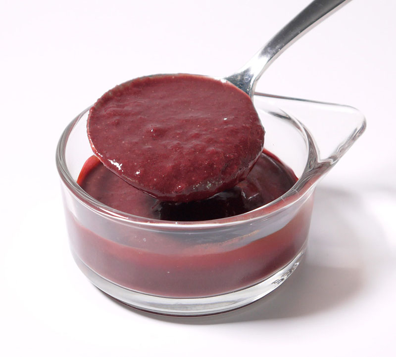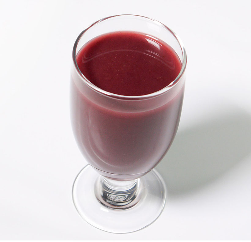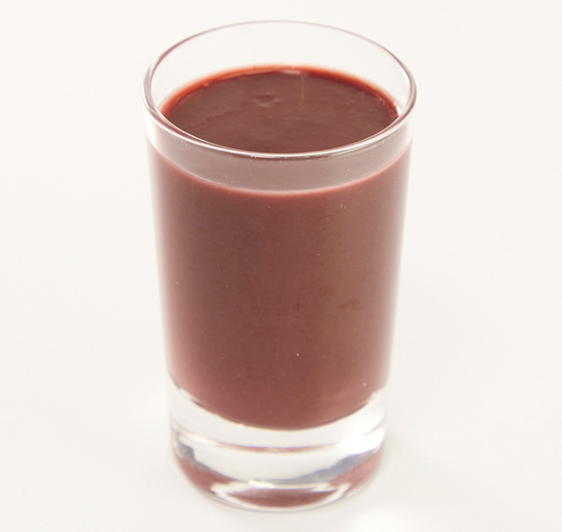 「モナクリスタル フローズンスムージーベース アサイーミックス」の使用例。写真はアサイーラッシー