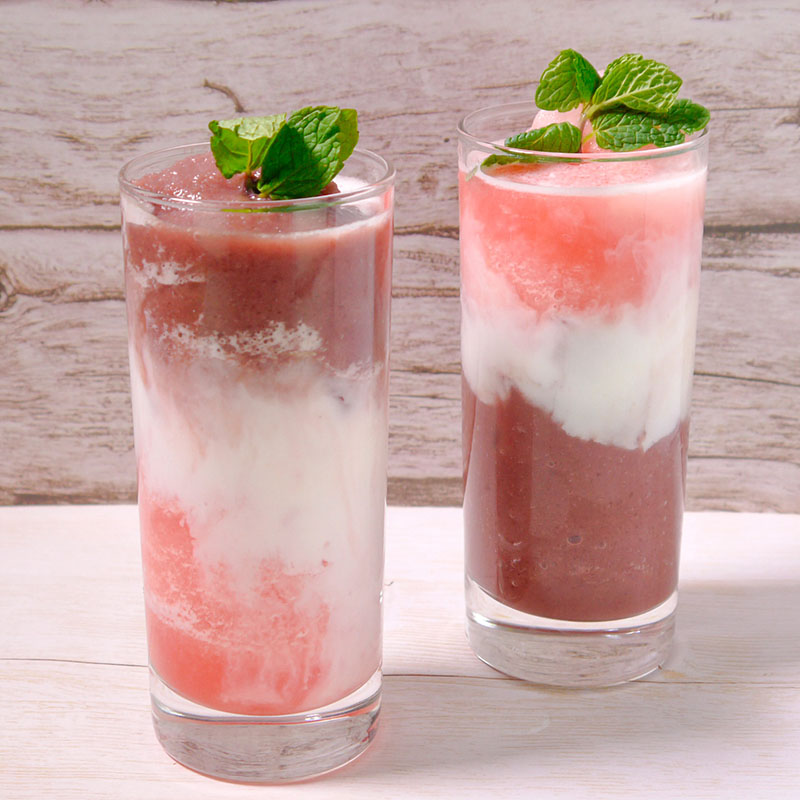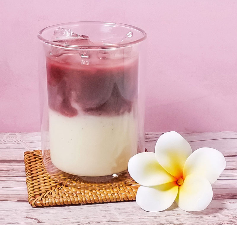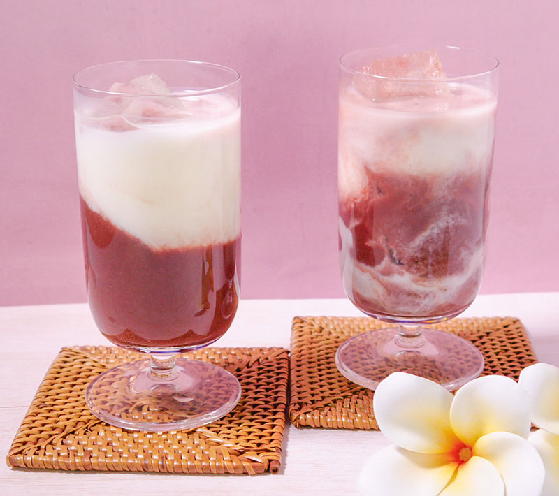 「モナクリスタル フローズンスムージーベース アサイーミックス」の使用例。写真はアサイー&グァバスムージー