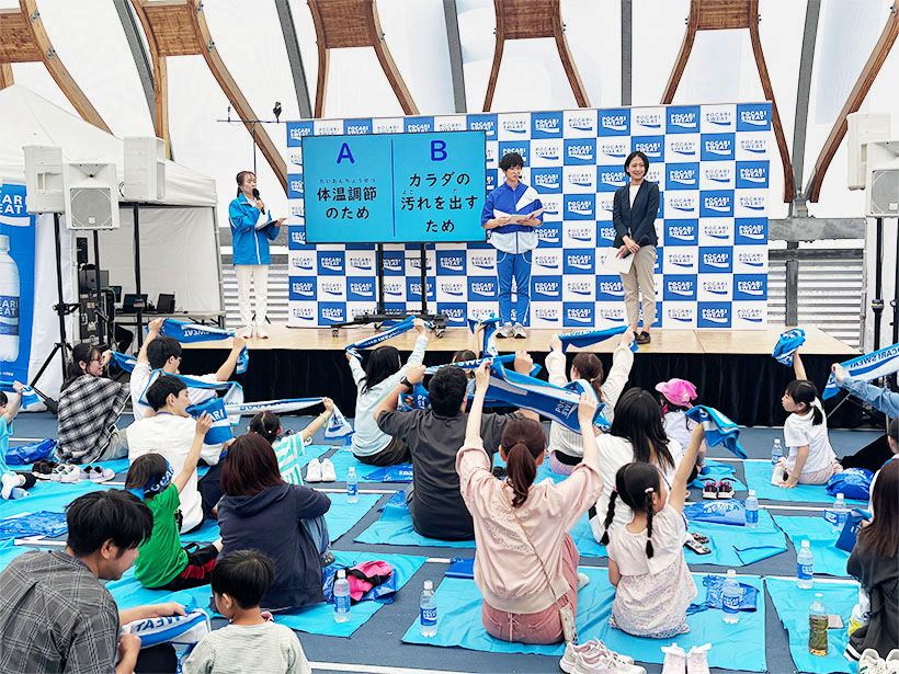 参加者は水分・電解質補給の重要性を「ポカリスエット」を通じて体感