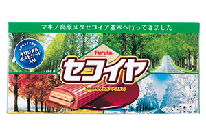 【関西】昨年10月1日に滋賀県高島市とフルタ製菓が締結した包括連携協定の一環として、同日から販売を開始したマキノ高原限定パッケージ「セコイヤチョコレート」(10本入と27本入の2種=写真)が、今年9月末までの1年間で同市内での売上額が1500万円を超えた。 同商品の売上げの一部は、同市にあるメタセコイア並木の保全やマキノ高原活性化に役立てるため、フルタ製菓から寄付され、この1年間の寄付額は46万円を超えた。また、当初市内3ヵ所だった販売も、現在は1