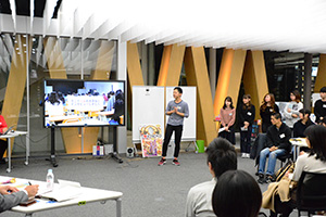 【関西】山田泰正UHA味覚糖社長に近畿大学の学生6チームが、新商品企画をプレゼンするイベント(写真)が同大アカデミックシアター(大阪府東大阪市)で17日に開催。山田社長や宗像惠同大リエゾンセンター長ら審査員によって選出された「マグロのめだま」と「Dipru」の2案が、商品化に向け検討される。 同社は、実学拠点「アカデミックシアター」内で産学連携ラボ「KISS LABO」を共同運営していて、学内公募で集まった学生44人が6チームに分かれ、同社社員の講