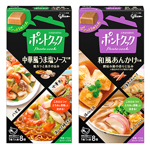 (右)=「ポントクック 和風あんかけの素」 (左)=「同中華風うま塩ソースの素」