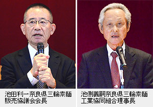 【関西】三輪素麺の今年の市場を占う「ト定祭(ぼくじょうさい)」が5日、奈良・三輪明神大神神社で行われ今年度(平成30年産)の三輪素麺「誉」新物一箱(18kg)は高値(1万1000円)との御神託が出た。高値は4年ぶりとなる。 かつて三輪の地には、穀物の市場があったとされ、その相場を占っていた伝統を引き継いだト定祭。神職が「高値」「中値」「安値」と書かれた紙を筒状に束ねた麻でつき、選ばれた紙に書かれた値札で三輪素麺の卸値を占うもの。奈良県三輪素麺工業協