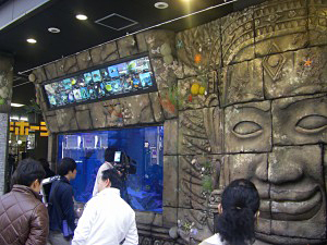 店舗の正面に「遺跡オブジェ&巨大アクアリウム」が設置された