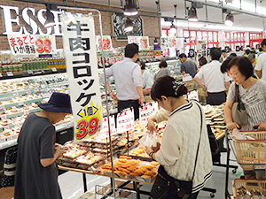 近畿と東海でSMを多店舗展開するコノミヤは7月20日、愛知県春日井市に「コノミヤ中切店」をオープンした。今回の出店で同社の店舗数はグループ全体で87店舗、東海地区45店舗(トミダヤ21店舗を含む)となった。 「ピアゴ中切店」(17年6月11日閉店)跡に居抜き出店した同店は、JR中央線「勝川駅」から徒歩約15分の住宅地に位置しており、周辺には戸建て住宅や学校などが点在している。 ニューファミリー層から高齢者まで幅広い顧客をタ