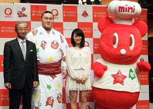 田辺裕社長はあいさつで「当社は冷凍ピザ・グラタンのトップメーカー。くまちゃん占いシリーズはおいしさと(カップ底にある)占いの楽しさが幅広い支持を集め、12年に販売数10億カップを達成した。中でも、子どもに人気の『えびとチーズのグラタン』は発売15周年を迎え、冷凍グラタン市場でシェアトップの商品。白鵬関は子どもとの触れ合いを大事にし、相撲を通じて夢と希望を与えている。商品のおいしさと楽しさをより多くの方に伝えていただける」と述べた。