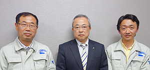 右から鶴岡比呂志社長、小林雄二水産事業副執行、前橋知之養殖事業推進室長