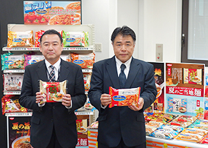 日清食品冷凍は今期4月から、営業新布陣でスタートを切った。取締役営業本部長には副本部長だった上和田公彦氏が昇格。営業全体のかじ取りを担う。また営業本部下の営業企画課を部に昇格させ、営業企画部として高橋克夫部長が指揮を執る。 この組織変更について高橋部長は、「営業戦略の強化が目的。流通取引先に対してMD提案を強化して、営業とともに具体的に落とし込んでいく。(量販売場のEDLP化など)環境変化をチャンスと捉え、数年先を見据えた提案に注力する」としている