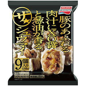 ●主菜のメニュー価値、男性に訴求 新生ブランド、浸透に注力 味の素冷凍食品が16年12月に発売した「ザ★シュウマイ」は、前年発売したヒット作「ザ★チャーハン」の成功を踏まえて開発された。これを機に同社初となるプロダクト・ブランド展開を開始。コアターゲットである男性ユーザーの獲得強化に乗り出した。反響は大きく、発売直後から冷凍シュウマイ市場売上げナンバーワンの座を獲得。17年2月からは人気タレント小栗旬を起用したテレビCMも投入し、トップの地位を盤石