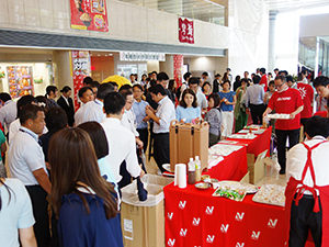揃いの“ハミダス”Tシャツを着た社員が試食提供した