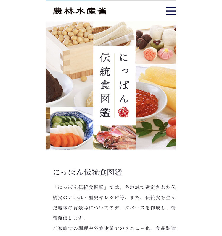 農林水産省は7日、各地域で選定された伝統的な加工食品を紹介するWebサイト「にっぽん伝統食図鑑」=写真=を開設した。伝統食の特徴、歴史、地域における保護・継承の取組みやアレンジレシピなどをデータベース化している。伝統食の魅力を再発見し、家庭での調理、外食企業でのメニュー化や商品開発、海外への発信・普及などへの活用を呼び掛けている。 日本各地で古くから受け継がれている伝統食やそれを活用した料理に関する情報は各地に存在するものの、データベースとして集約