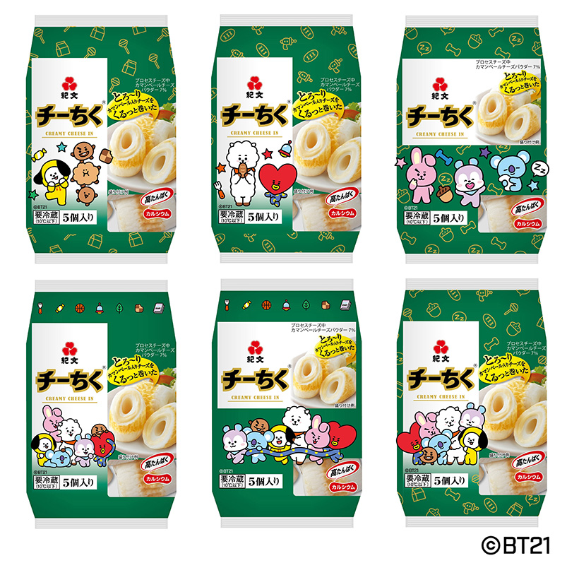紀文食品は、サンリオの人気キャラクター“ポチャッコ”とコラボレーションした商品「ポチャッコ はんぺん」(4パターン)を2月23日~3月13日までの期間限定で発売する。さらに、LINE FRIENDSのグローバル人気キャラクターであるBT21がデザインされた限定バージョンの「チーちく」(6種デザイン)を、3月2日~31日までの期間限定で展開する。 「ポチャッコ はんぺん」には、ポチャッコのかわいらしい表情の焼き印が描かれている。焼き印は全4パターンあ