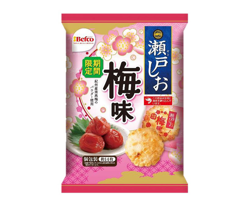 栗山米菓は26年1月12日から期間限定で、同社人気ブランド「ばかうけ」「瀬戸しお」の梅味を全国発売する。どちらも紀州産南高梅の香りと酸味を生かし、この時期ならではの味わいに仕上げた。 「ばかうけ 梅味」(写真、2枚×8袋入)は紀州産南高梅パウダーでさわやかな梅の香りと、ほんのり効いたカツオのうまみが絶妙に重なる味わいが特徴。親しみやすい味付けで幅広い世代に楽しめる仕上がり。パッケージも、春めいた華やかで明るいデザインを採用した。