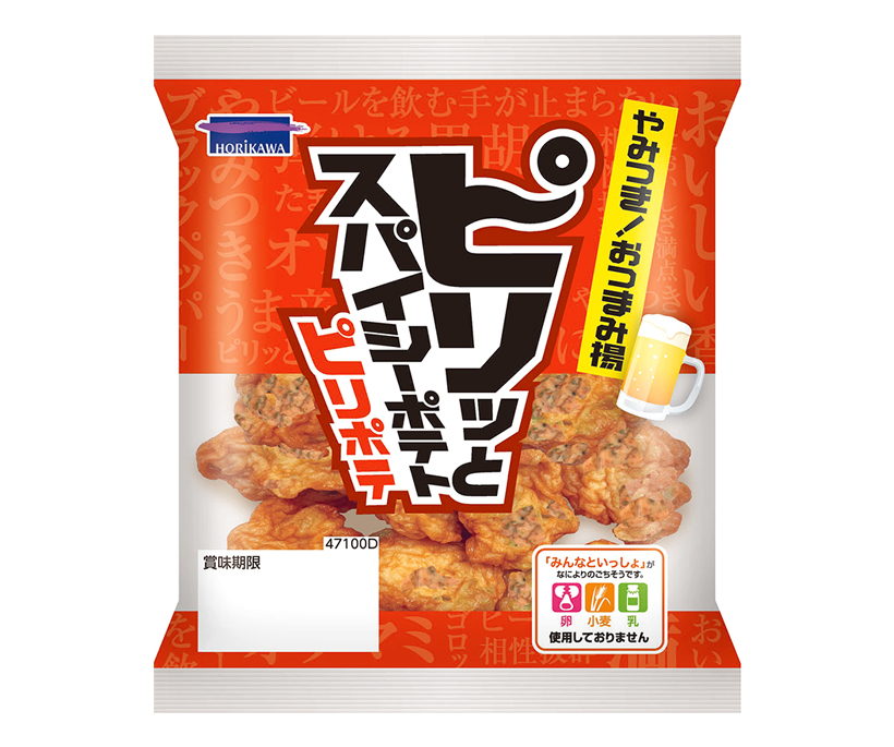 堀川は3月2日、今春夏の新商品として「おつまみ揚 ゴロッと枝豆」=写真、「同ピリッとスパイシーポテト」(いずれも10個入、標準小売価格150円)、「ニンニクの芽とオクラのピリ辛揚」(8個入、同230円)を発売する。それぞれパンチの効いた味付けで、春夏のおかずやおつまみにぴったりの商品に仕上げている。 「おつまみ揚 ゴロッと枝豆」はおつまみに適した塩加減と枝豆の風味、ゴロッとした食感が楽しめるちぎり揚げ。 一方、「同ピリッと