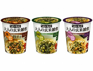 キユーピーは18日から、ヘルシーキユーピー「大人の玄米雑炊」3アイテムを、お湯を注ぐだけで簡単にできるカップタイプで発売する。 中高年の健康ニーズに応える商品として、袋入りの「6食セット」を昨年8月に発売した。さらに多くの食場面で使えるようにカップタイプを加え、ランチタイムや小腹が空いたときの間食、夕食を簡単に済ませたいときなど、健康に配慮しながら手軽に食事を取りたいというニーズに対応する。 商品は製法特許で、玄米の粒残り