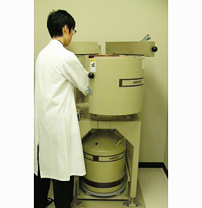 ゲルマニウム半導体検出器にサンプルを入れる。約14時間かけて検出する