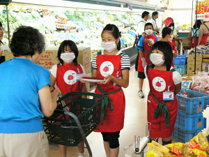 「ミニトマトはいかがですか」。短い言葉でも元気いっぱいのかけ声にはならない。慣れていないから少し恥ずかしい--。コープかながわは2日、北海道ふらの農業協同組合の野菜生産者の子どもたちによる農産物販売体験「ふらのキッズ農業塾」を同生協の片倉店で実施した。小学校4年生から中学校1年生まで28人のふらのキッズが参加。自分たちの親が丹精込めて作ったミニトマト、トウモロコシ、長ネギなどをパックし、ラベルを貼り、陳列して、サンプリングを体験した。 コープかなが