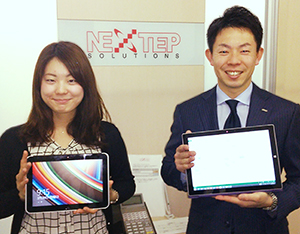 ファベックス展で「タブレット有効活用を体験できます」と、菊池亮太氏と渡邊舞子氏