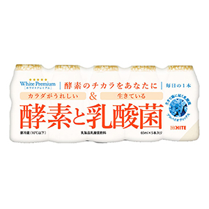 ●コクのある新タイプ乳酸菌飲料 ▽発売元(販売者)=(株)日本アクセス▽製造者=ホワイト食品工業(株)▽商品名=ホワイトプレミアム 酵素と乳酸菌(写真)▽JANコード=4902637140615▽品目(カテゴリー)=乳関連飲料▽発売日=14年9月1日▽発売地域=関東甲信越地区▽価格=150円(税抜き)▽容量=65ml×5本 ▽概要=プロバイオティクス乳酸菌に麹由来の発酵酵素液を加えた、新しいタイプの乳酸菌飲料。コクのある安心のお