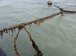 16年の中国産ワカメは主要な産地である大連地区が生育不良に見舞われ、中国全体の生産数量は15年の21万2000tに対して、前年比70%減の7万3000t前後と大幅減産となる見込み。 中国・大連地区全体の養殖数量の70%を占める金石灘から大李家エリアが、沖出しする10月上旬の時期に海水温が高かったため芽落ちが発生した。その後も続けて沖出しを行ったが、さらに芽落ちが発生したことで、養殖数量が例年の20%に落ち込んだ。 さらに大