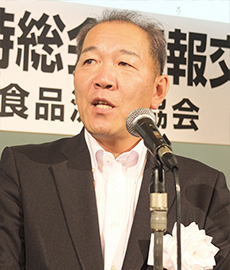 日本外食品流通協会は5月29日、17年度定時総会を東京都千代田区のKKRホテル東京で開催した。定款の改正により、副会長が4人以内から5人以内に変更。新たに中部支部長・金森武氏(大光社長)が副会長に就任した。また、理事の補選では東京中央食品・狩野憲彰氏が就任した。 総会後の懇親会で尾家亮会長は「新聞報道では4月の外食は好調だったという。伸びている企業は新しいメニューを提供したり、海外進出、新店オープン、量販店と提携するなどあらゆることをやって伸ばしている