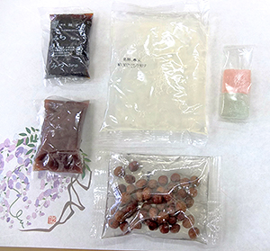 あんみつの具材が一人前ずつ小袋に入っていて、誰でも簡単に「あんみつ」ができる。