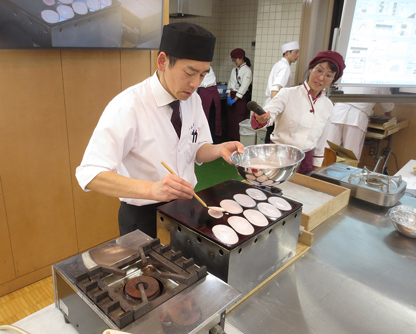 ナガセヴィータは15日、東京都新宿区の東京製菓学校で「東京和菓子講習会2026」を開催、和菓子店店主、菓子職人、メーカー開発担当者ら約100人が受講した。講習会では菓匠青柳の仲嶋真輝店主、杉山本店の杦山勝社長が絶妙なコンビネーションで和菓子7品を試作しながら、「トレハ」「ハローデックス」「テトラリング」「ファイバリクサ」などの同社商品を使うことのメリットなどを解説した。受講生は両氏の和菓子作りの手さばきをじっくり見るとともに、でき上がった和菓子を試食しながら同社商品を活用し