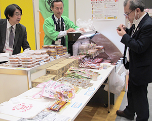 東京都漬物事業協同組合は1月30、31日、東京国際フォーラムで開催した「組合まつり~中小企業の魅力発信~」に出展した=写真=。都内を中心に各地のメーカー14社から23アイテム620品を協賛してもらい、市中より若干低めの価格で試食販売したところ、31日の午後3時ごろに完売した。 同イベントは今回が2回目で、中小企業世界発信プロジェクトの一環として全国の中小企業組合を集め、組合の知名度アップ、組合産品の展示、販売を通じた販路の拡大、地域の魅力発信として