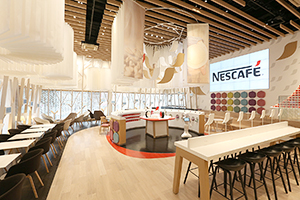 ネスレ日本は、「カフェ ネスカフェ原宿」(写真)を「ネスカフェ」の旗艦店として、全面リニューアルした。味わう・聞く・香る・触れる・見るの「五感で楽しむ」をコンセプトに体験型カフェとして、2月28日にグランドオープンした。店内のインテリアやフロアデザインだけでなく、メニューも一新した。体験を通じた楽しみを提供して、「ネスカフェ」ブランドの価値向上につなげていく。 特徴的なのは、店内中央に設置した「ネスカフェ」体験コーナー。「ネスカフェ ゴールドブレン