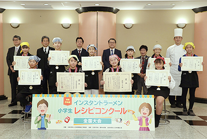 日本即席食品工業協会は11月28日、第20回インスタントラーメン小学生レシピコンクール全国大会を東京都内で開催した。これは農林水産省、文部科学省、日本栄養士会の後援を得て、小学生(4~6年)を対象に行うもの、1万444作品の応募があった。その中から、農林水産大臣賞には福島県福島市立大笹生小学校の花岡こころさんの「夏に負けるな!!ビタミンたっぷりグリーンカレーラーメン」が、文部科学大臣賞には秋田県秋田市立米内沢小学校の伊藤瑠亜さんの「コロナに負けるな!秋田だまっこラーメン」が