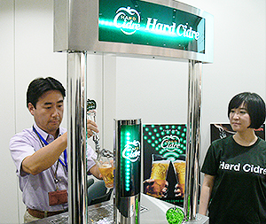 キリンビールが業務用でテスト展開する「ハードシードル」が取扱店を着実に広げている。独自に開発したリンゴを発酵させた酒(シードル)で、6月中旬から首都圏の料飲店限定で15L樽の展開をスタート。「ビール類で行うマスマーケティングとは異なり、丁寧に1店ずつ価値を伝えていく」(キリンビールマーケティングの臼田敦朗常務執行役員営業部長)という従来にない販促手法を採用しており、大手ビールメーカーの新たな取組みとして注目されている。現在100店舗で取り扱うが、13年中に400店まで拡大し