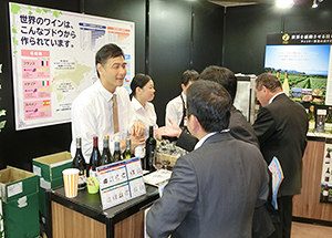 オリジナル什器(じゅうき)によるブドウ品種別の棚割(130周年記念展示会)
