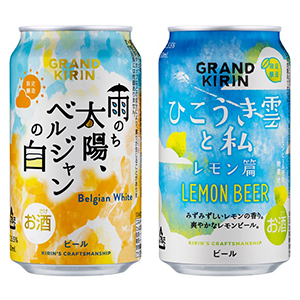 キリンビールは4月以降、酒税法改正によるビールの定義拡大に対応したクラフトビールの発売を積極化する。「クラフトビールは20~40代男女のファンが多く、将来的な飲用も期待できる」(山田精二企画部部長)として「味わいの多様性を訴求することでビールの魅力をあらためて認識してもらいビール市場全体の活性化につなげたい」(同)考え。 新たに副原料として認められたレモンピールを使った「グランドキリン ひこうき雲と私 レモン篇」=写真(右)=を4月17日、オレンジ