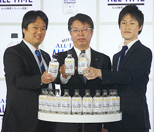 サントリービールは、ノンアルコールビールテイスト飲料市場のさらなる拡大に向け、無色透明な「オールフリー オールタイム」を発売する。380mlのPETボトル入りで、ビールらしさを極力抑え、職場での飲用のハードルを下げ会議中などの飲用を訴求する。「当社の開発力と飲用シーンの提案力を掛け合わせたまったく新しい商品。ノンアル市場に革新を起こす」(山田賢治社長)考えだ。(丸山正和) メーンターゲットは20~