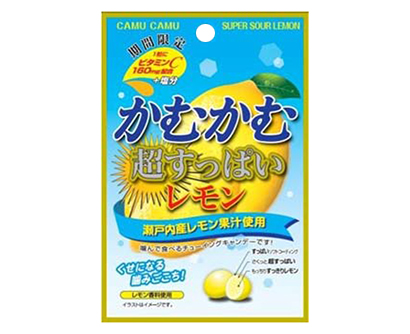三菱食品は8日、自社オリジナルのチューイングキャンデー「かむかむ超すっぱいレモン」(=写真、内容量30g)を発売した。8月末までの販売で夏季限定フレーバー。 瀬戸内産レモンを使用。一粒当たりビタミンC20mgと塩分を配合したかんで食べるチューイングキャンデー。外生地はさくっとして口溶けがよく、内生地はもっちりとした食感。すっきりとしたレモンの酸味と塩味が楽しめる。癖になるかみ心地が特徴だ。 かむかむシリーズは02年からチュ