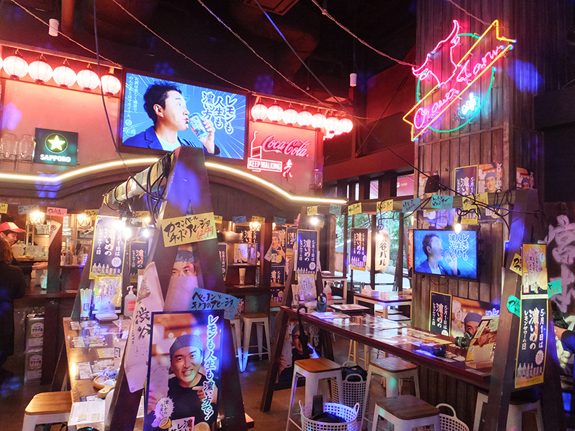 のれんやCMキャラクターのムロツヨシのフォトスポットなどで「濃いめのレモンサワー」の世界観を発信