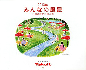 ヤクルト本社は、12月初旬から年末にかけて、ヤクルトレディやヤクルトビューティを通じて、ヤクルトカレンダー「2013年みんなの風景~日本の歴史を辿る旅~」(写真)を配布する。13年版の発行部数は約653万部。 同カレンダーは71年から毎年発行しており、適当なサイズ(縦171mm×横203mm)で、ぶら下げることができる使い勝手の良い月めくりカレンダーとして、多くの人に愛用されている。99年版は世界一の発行部数807万2272部で、ギネス・ワールド・