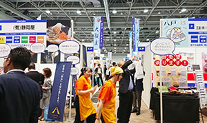 【東北】今年で4回目となる東北復興水産加工品展示商談会2018が6月12、13日、仙台国際センターで開催された。震災から7年経過してはいるが、取引先を失ったり、風評被害も払拭(ふっしょく)されないままの状況で、東北の水産業界復興、販路開拓を掲げた東北6県の取組み。主催は復興水産加工業販路回復促進センター。“繋がる・繋げる”がテーマ。 東北6県、茨城沿岸部から134社が出店、来場者は2日間で5500人に及んだ。期間中全国から60人のバイヤーを招待し、