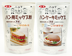 JA全農、波里、三菱食品は国産米粉を原料に使ったパン用ミックス粉とパンケーキミックス=写真=を共同開発し、3月から全国の小売店へ販売を開始した。昨春に発売した国産米粉使用のシリアルフレークに続く、共同開発商品第2弾。開発コンセプトを引き続き“国産米の新たな需要創出”に据え、ホームベーカリーで作るパン用ミックス粉、専門店の登場などで女性の支持が高まっているパンケーキミックスへラインアップを拡大した。 商品はいずれも標準小売価格246円、内容量300g