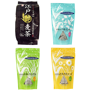 ●低価格競争脱却し攻勢 常陸屋本舗の昨年度麦茶販売実績は、業務用のPET飲料向けなどが新規増加で伸長した。同社はFSSC22000認証を、業務用麦茶・ハトムギ茶原料商品製造工場の岩井工場で取得し、業務用伸長の要因にもなったようだ。家庭用は横ばいとなった。 今年、国内産六条大麦にハト麦を加えた「江戸艶麦茶50P」を新発売した。国内産の六条大麦と、肌のためによく飲まれているハト麦を丁寧に煎り上げたブレンド茶だ。パッケージデザイ
