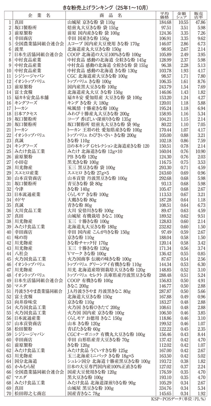 粉類 特集 2025.11.28真田の主力商品「京きな粉」(110g)の25年6月期売上高は前年比5.9%増。単品として2年連続で200万袋を超えるなど、順調な販売を持続している。 「京きな粉」は北海道産大豆を使用し、高温熱風による深煎り焙煎で引き出した香ばしい風味と、きめ細やか…続きを読む