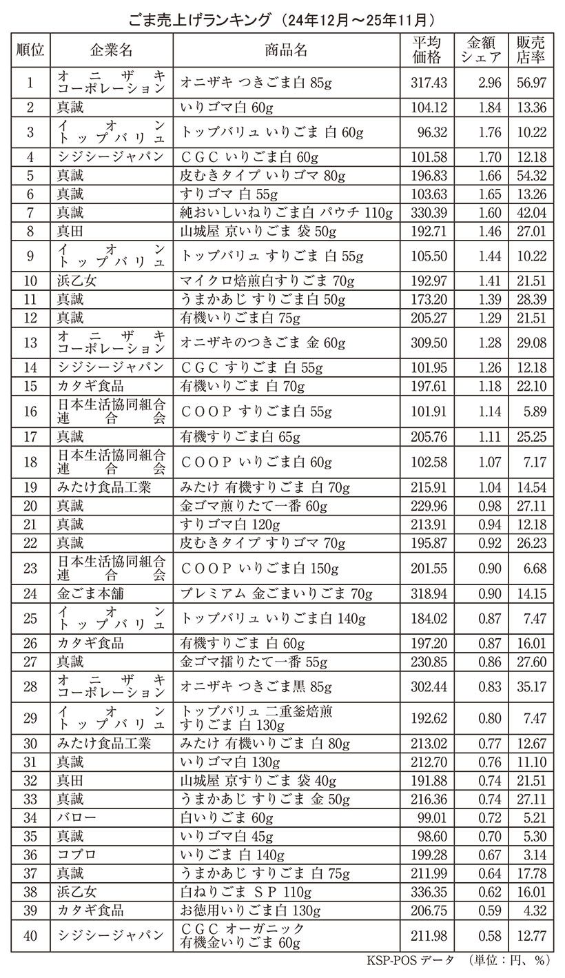 加工ごま特集:真誠 家庭用好調、NB注力を