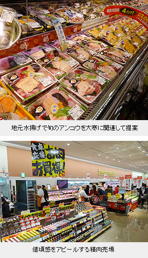 ヨークベニマルは19日、茨城県日立市に売場面積693坪(2292平方m)の日立河原子町店を開設した。国道に面した商業集積の核店舗で、ダイソーやサンドラッグのほか、温浴施設も隣接している。市内3店目で、南北に位置する既存店の空白地域を埋めた。 店舗の後背は海岸のため、商圏は変形的な設定。同社は徒歩10分、車で5分を基礎商圏としているが、日立河原子町店の場合、徒歩10分圏内は海岸や日立グループの工場があるため人口は限られている。国道沿いに車で5分圏内の