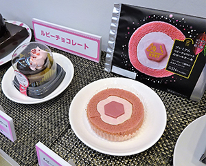 ローソンは9月25日、ルビーチョコレートを使用したロールケーキを発売する。 ルビーチョコは、スイスのバリーカレボー社が開発した新タイプチョコで、ダーク、ミルク、ホワイトに続く「第4のチョコレート」として注目されている。カカオ豆由来の成分によって見た目はピンク色、味わいはベリーのような風味がある。今年は輸入量のおよそ半分をローソンが使用するという。 ロールケーキはクリームやスポンジにルビーチョコを配合し、ピンク色に仕上げた。