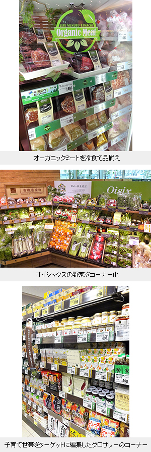 ライフコーポレーションは、4日に開設したムスブ田町店(東京都港区)を都心型店の次世代モデルと位置付ける。JR田町駅に直結する複合ビルの1階に出店したもので、売場面積は1175平方m(360坪)と同社の中ではやや小型だ。通勤客の朝食需要を取り込むため午前8時に開店する。午前0時の閉店後、翌日のために品出しする。この夜間オペレーションは都心型モデルの検証ポイントとなっている。(宮川耕平) 店舗周辺の昼