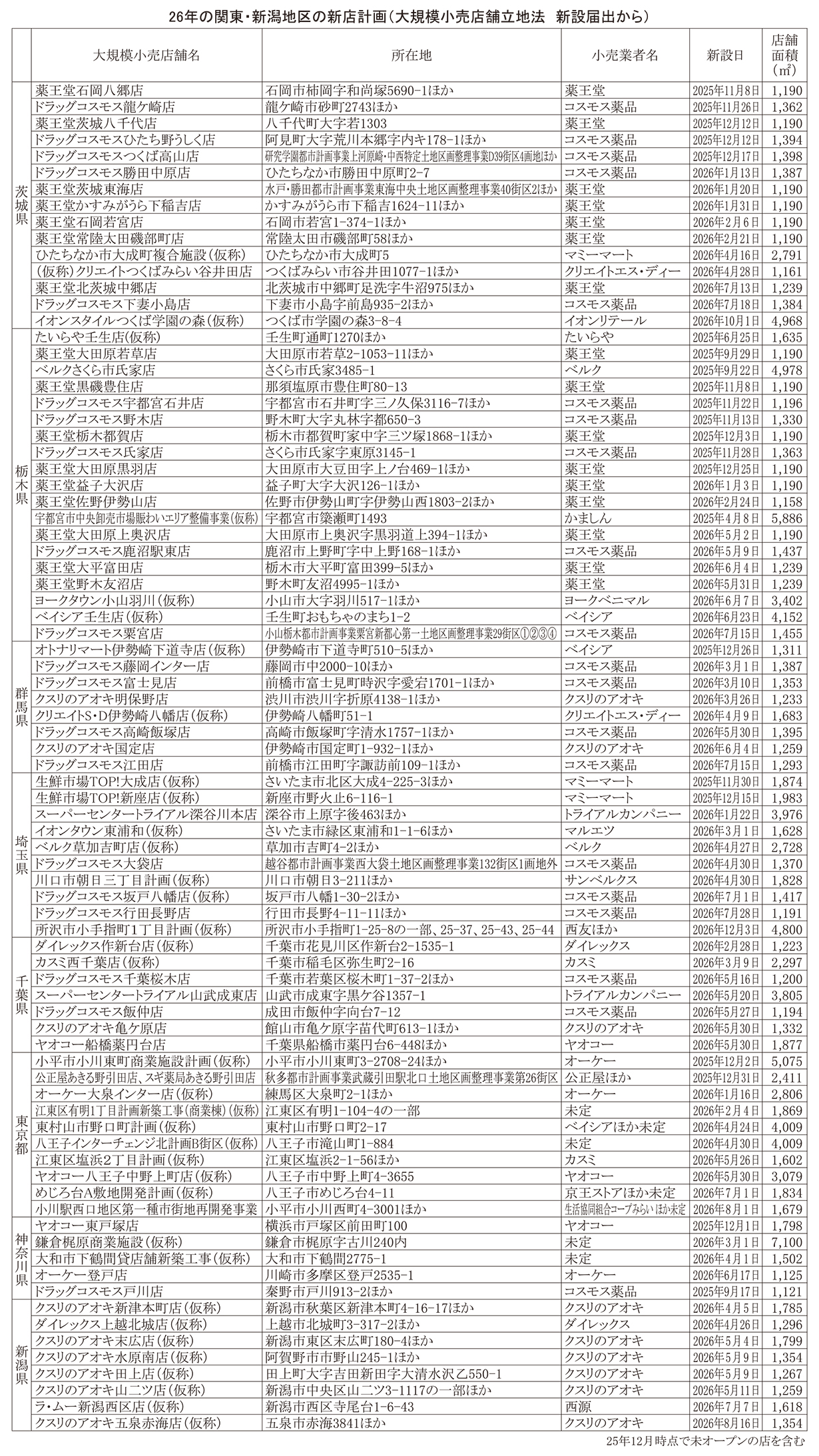 26年の関東・新潟地区の新店計画(大規模小売店舗立地法 新設届出から)