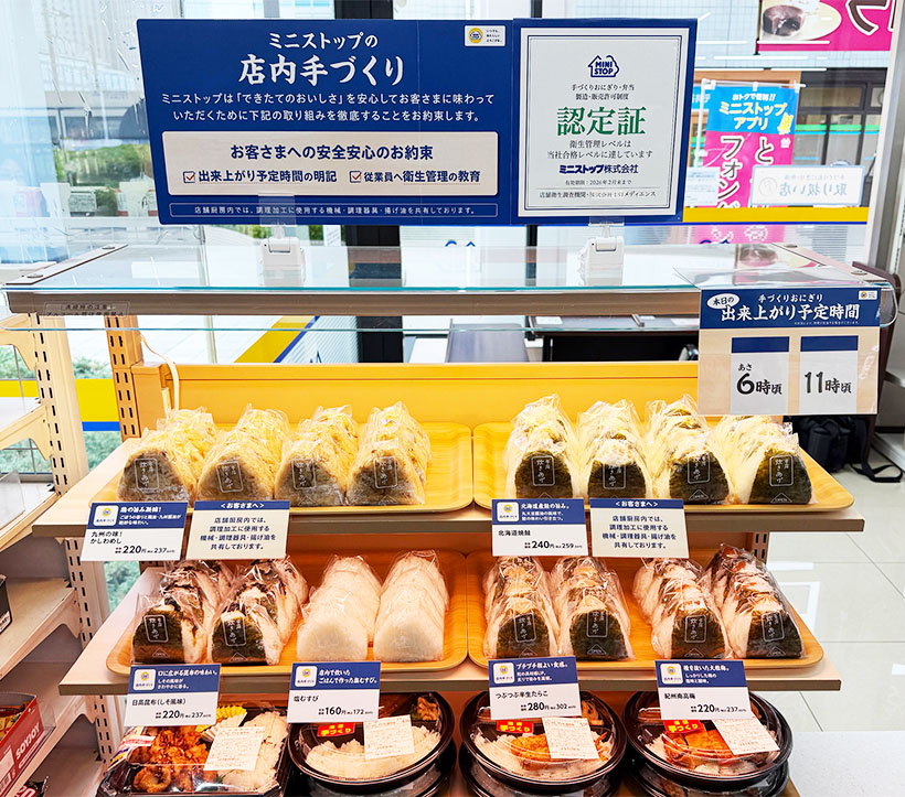 ミニストップは8日、26年2月期第3四半期連結決算の会見で、昨年10月から順次再開している店内加工おにぎりの状況を説明した。加盟店の選択制に改めた同カテゴリーを再開するには、不正を阻止する新型ラベル発行機や厨房カメラなどを導入し、衛生管理や製造オペレーションの再教育を経て認定を受ける必要がある。12月末時点で480店が販売を再開した。2月末で全店の約4割に相当する700店を予定する。 堀田昌嗣社長は「安全安心を最優先しているので再開には時間がかかる