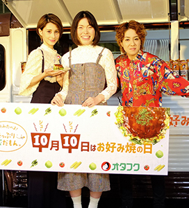 オタフクソースは10月10日の「お好み焼の日」に合わせ、お好み焼きのポップアップストア「OKO STAND(オコ スタンド)」を7日から4日間の期間限定で東京・六本木のラピロス六本木に開店。「野菜をたっぷり使うお好み焼きはヘルシー食」との認知向上を目指し、5日にストアオープン記念イベントを開催した。 同ストアでは、野菜中心に10種類の具材を使った3色の重ねお好み焼き「10種類の具材たっぷりカラフルオコタワー」と、ふわふわ食感のお好み焼きをバンズに見