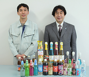 主力商品群を前に、市町貴世工場長(左)と市町峰行代表取締役